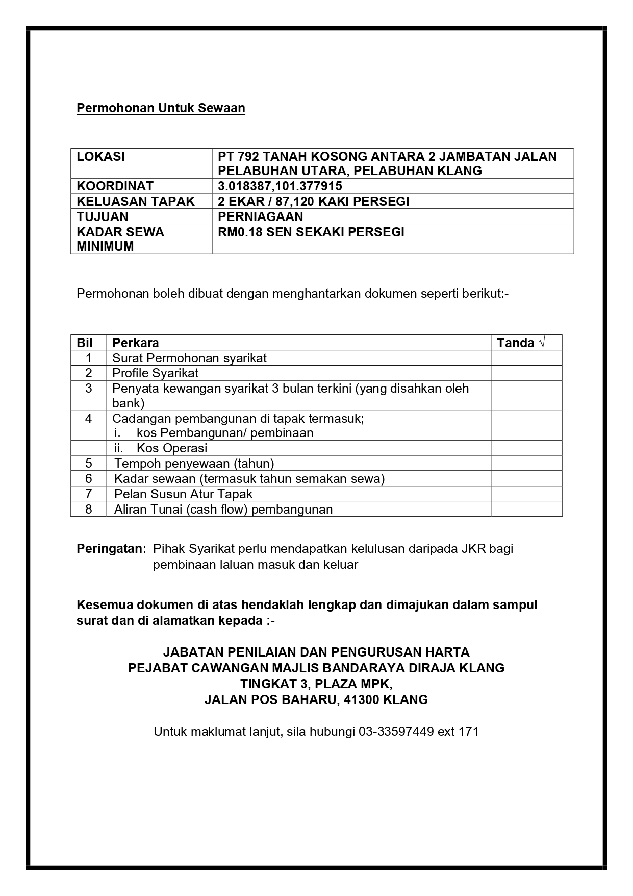 IKLAN TANAH KOSONG UNTUK DISEWAKAN (BULAN FEBRUARI 2026)