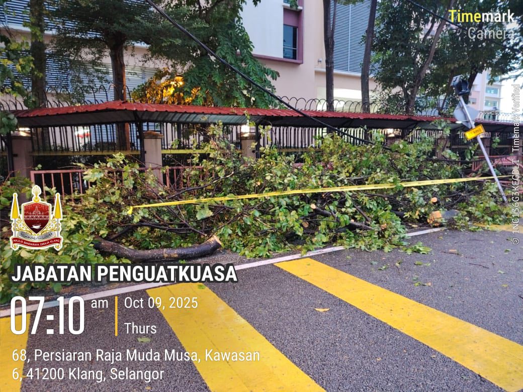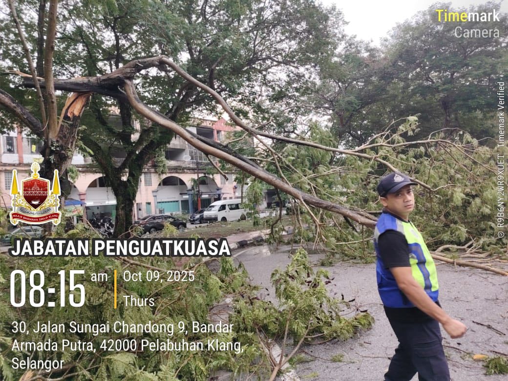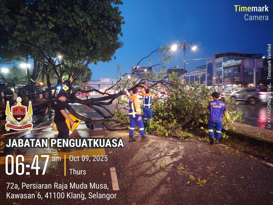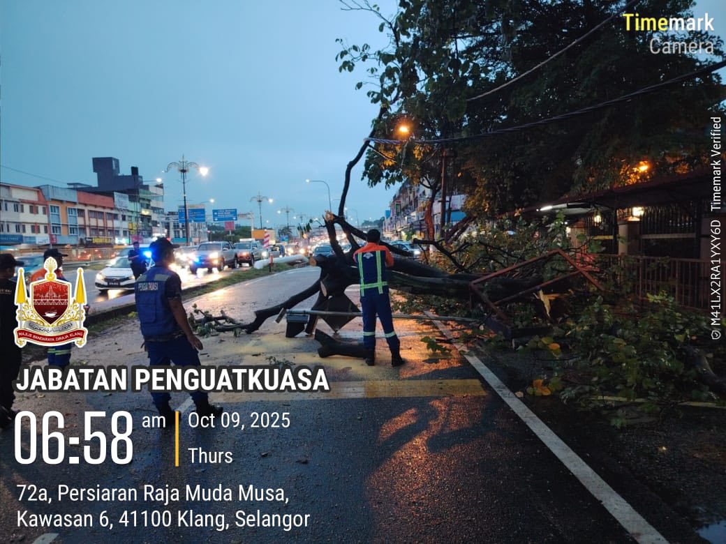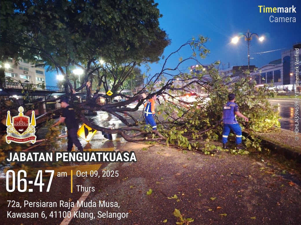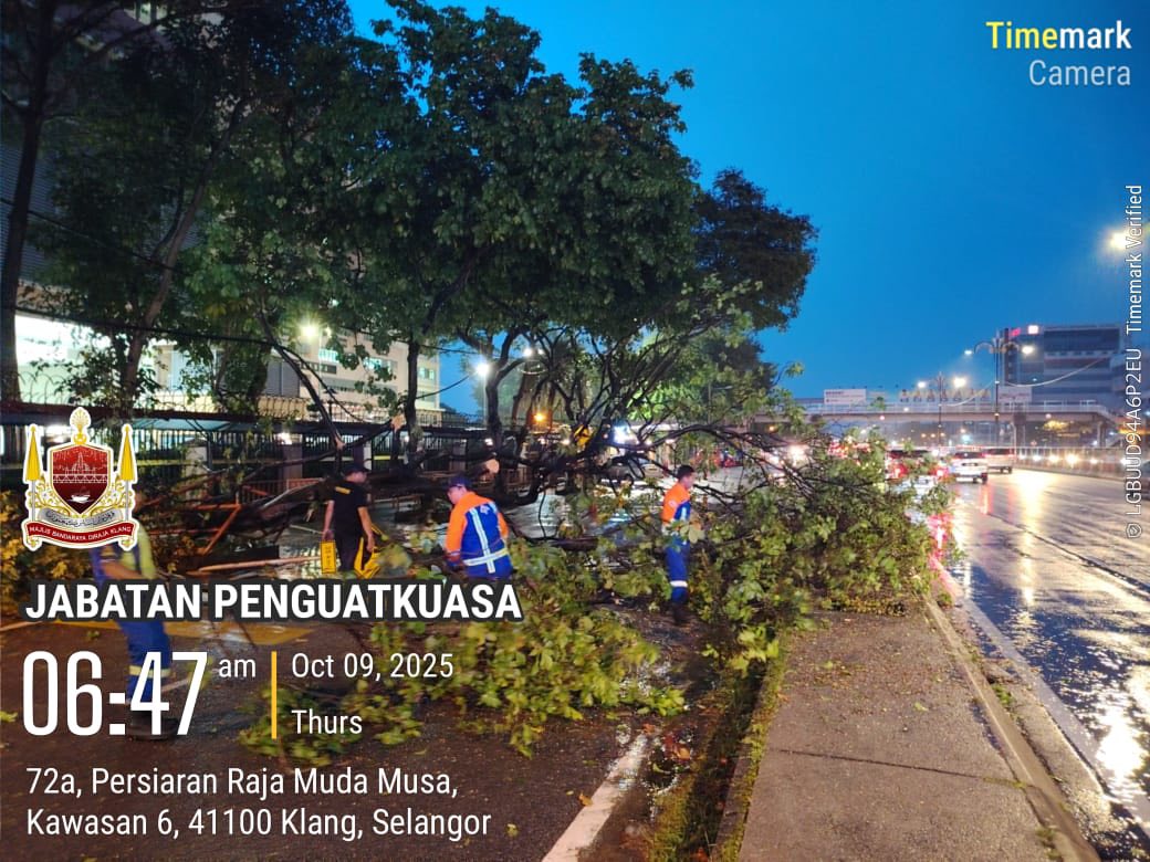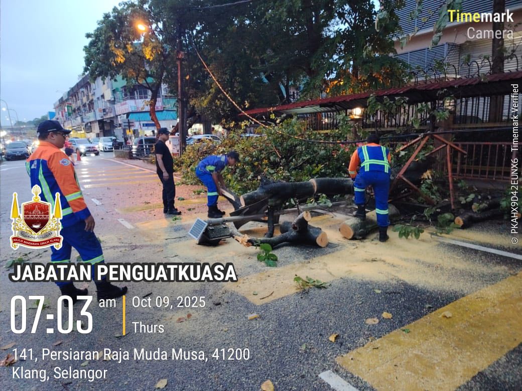 SKUAD PANTAS MAJLIS BANDARAYA DIRAJA KLANG MEMBUAT TUGASAN AWAL DALAM KEJADIAN RIBUT YANG MELANDA KLANG